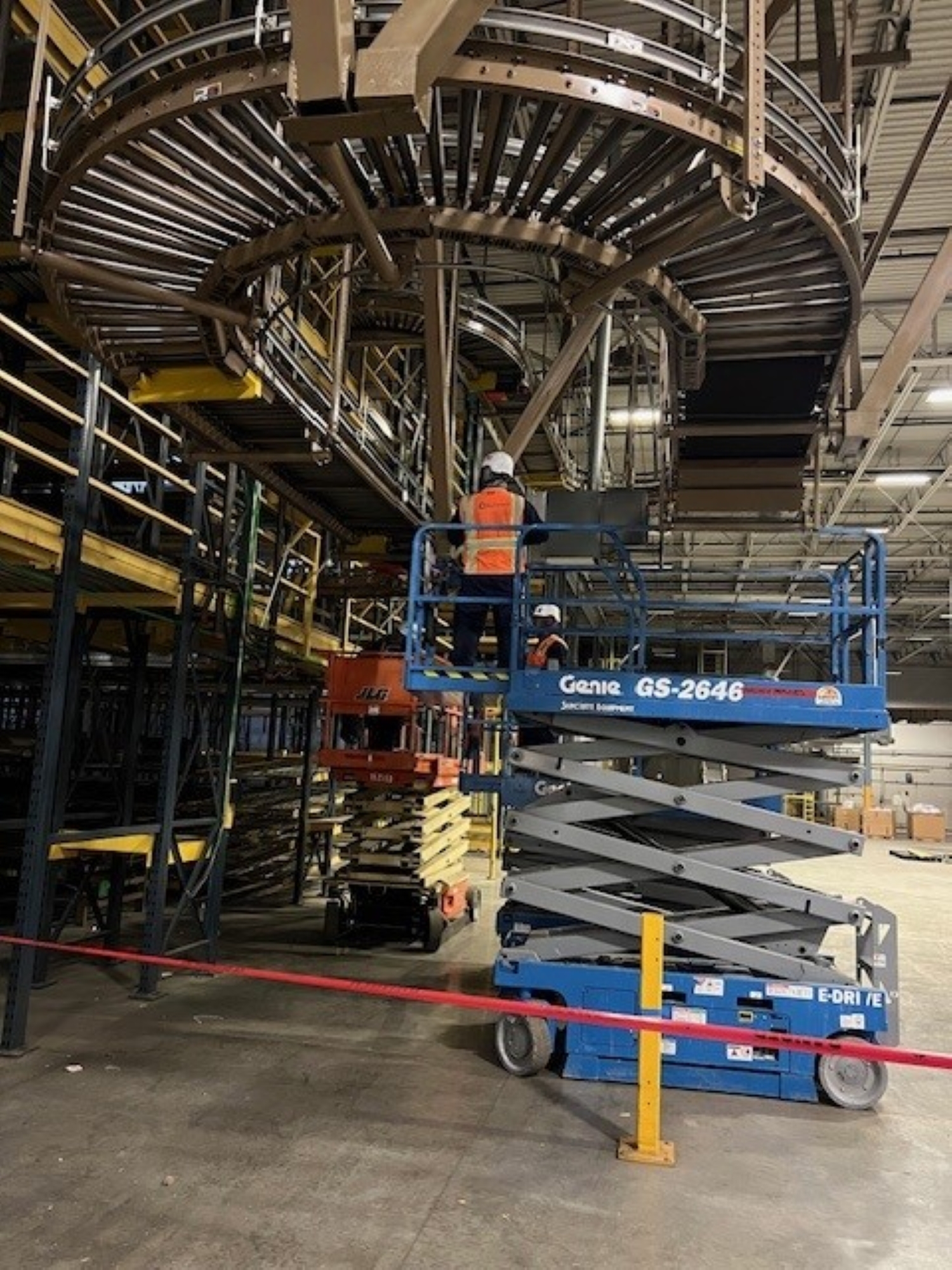The project at Kaiser Livermore involved extensive demolition of equipment inside a former warehouse distribution center that is being converted to a mail-order pharmacy. The initial phase of the project involved demolition of high-bay storage racks, overhead conveyor belts, rolling doors, dock levelers, card-board bailer equipment, natural gas lines, mechanical ductwork, conduit, and compressed air lines. The scope also included removal of lead-containing paint and cleaning of an acid-waste neutralization tank inside a permit-required confined space, performed by our Environmental division. The second phase of work will involve demo of exterior insulated metal wall panels for new door and storefront openings.